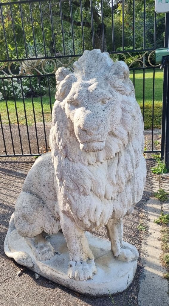 Closer to the village I find Le Jardin Retrouve, guarded by fierce lions at each gate and griffins within. It’s bejewelled with flowers, pretty as a picture.