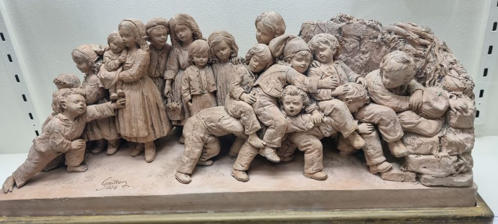 The museum has a growing collection including this recently acquired modern sculpture. ‘The Frame’ is rather fabulous, appearing completely different depending on the angle from which it’s viewed. Himself is very generously patient when asked to be a prop, given that he has to wait his turn to do so.