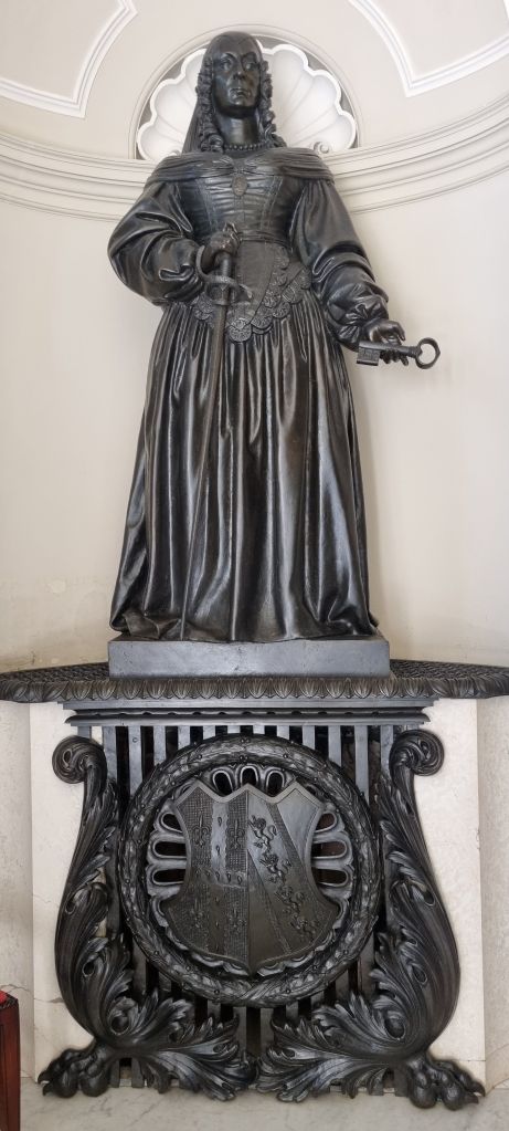 They clearly had an eye for good real estate – prior to Kingston Lacy, the family held Corfe Castle. Lady Mary Bankes held off an attack on the castle for three years during the English Civil War in the 1600s, successfully securing the family fortune thereby enabling her son to build Kingston Lacy. Sadly, Corfu Castle was destroyed in a later battle. In her spare time she popped out four sons and six daughters. She’s honoured at the entrance holding a sword and the keys to the castle. What a woman, centuries ahead of her time.