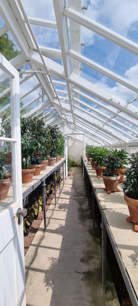 There’s a walled kitchen garden of course, which once provided for the household and its staff. It has an extraordinary range of heirloom plantings and glasshouses. A seperate well provides the garden’s requirements. I’m quite pea green with envy.