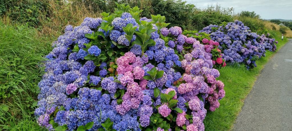 There’s only so long I can sit in one place and we need supplies. It’s a good long walk through country roads with all charm they bring – horses, hedgerows, flowers aplenty, buzzy bumbles willing to be patted, blackberries on the verge of ripening, some already there serving as an occasional juicy inky treat. Eggs for sale – both duck and hen. Cows looking on patiently. Very soothing for what ails one.