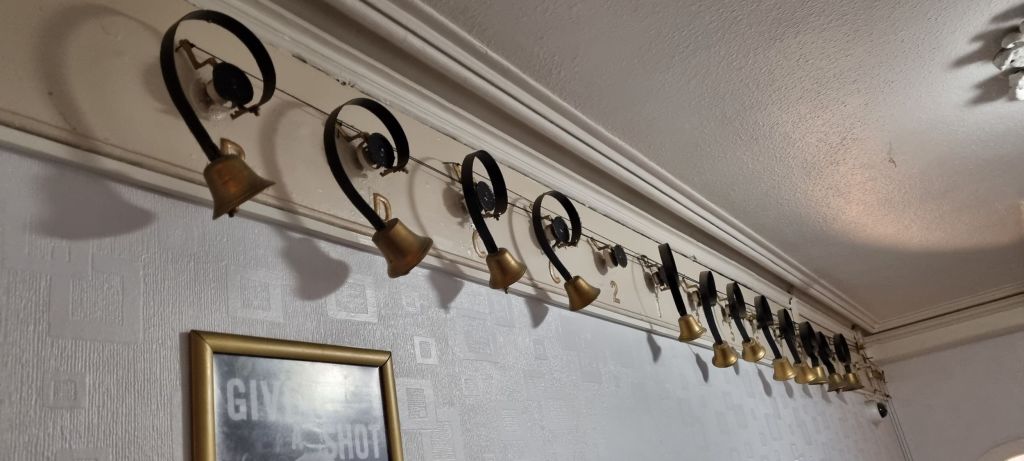 The pub has a music theme with an impressive array of vinyl on display and music videos bopping away on screens. I pick up a new recipe from the chef – creamed leeks served as an accompaniment. Delicious. On our way out I spot the original call bells – perhaps once a house?