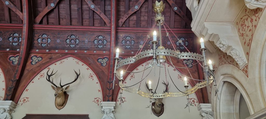It’s fair to say that his taste spilled over into his designs. Richly decorated and ornately finished, every surface either painted with a mural or featuring carvings in wood and stone – he even designed furniture and soft furnishings. But oh so very over the top – picture gothic crashing into medieval with more than a hint of Vegas sprinkled throughout and you’re well on the way.
