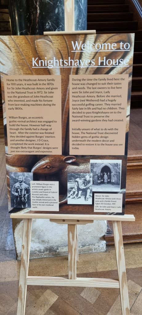 To appreciate Knightshayes one has to understand the story behind its creation. The house was commissioned by Sir John Heathcoat Amory in 1869, appointing the ‘it’ architect of the day, William Burges. Now whilst William was widely recongised in the 19th century for his flamboyant gothic revival style, he was also nothing short of a fully fledged eccentric. Obsessed with the medieval period he dressed in the medieval manner, frequently as a court jester, smoked copious amounts of opium, held church services for his many cats and excommunicated one of them for mousing on a Sunday. I kid you not – you can’t make this stuff up.