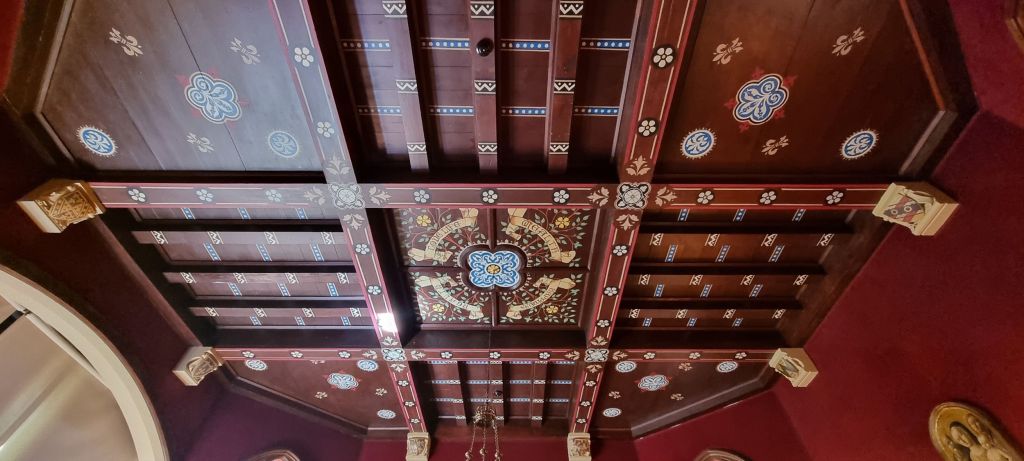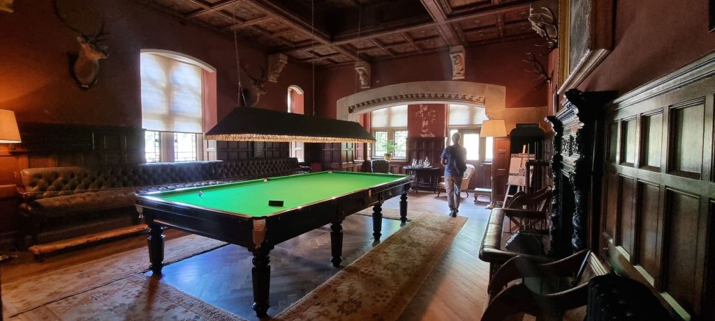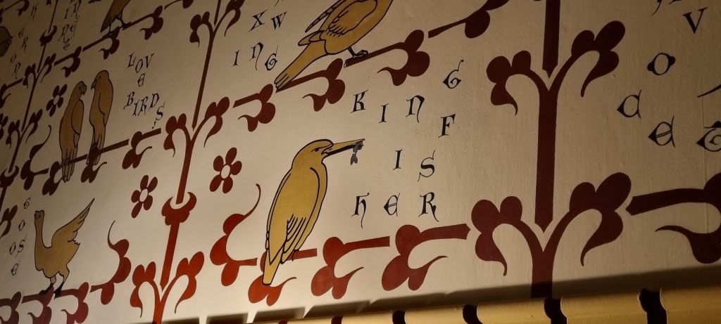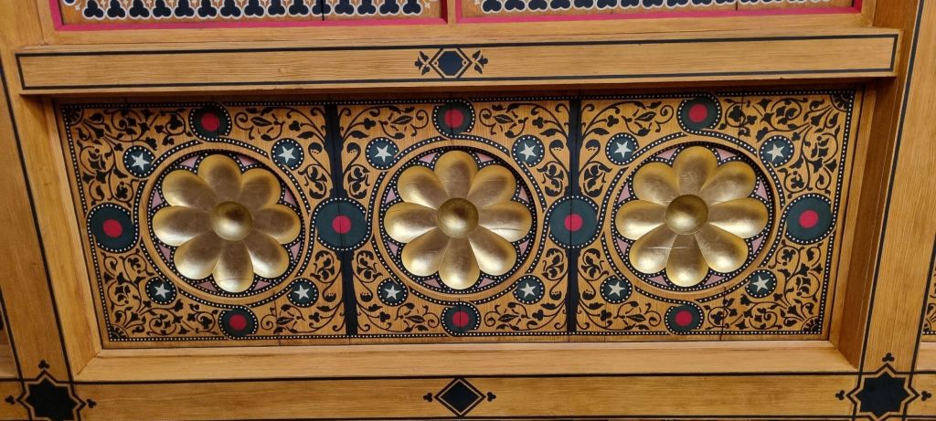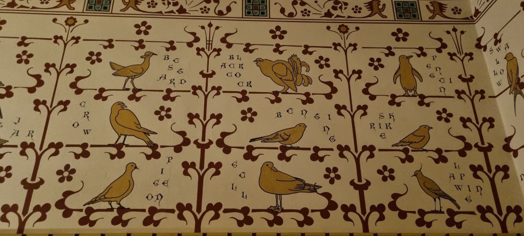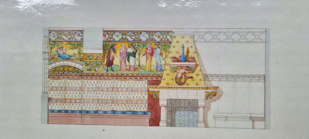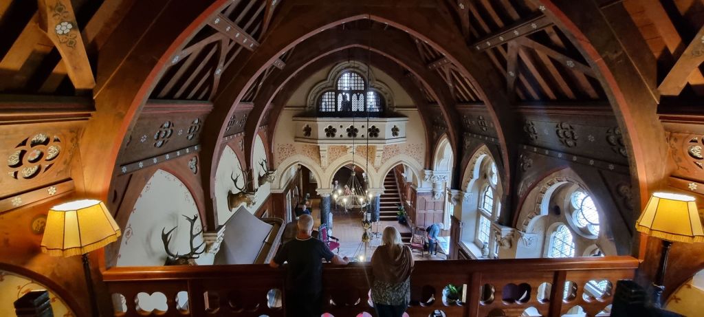 Two rooms are restored as wholly Burgess – the entrance foyer, modelled on a medieval great hall complete with viewing platform,