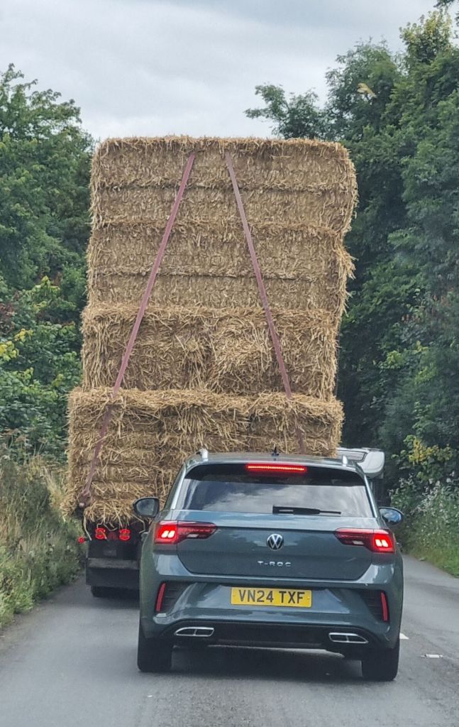 A massive hay lorry swaying under its weight provides a good 30 minutes of entertainment on the way home, the car behind hot on his heels. There’s no way I’m even thinking of passing that thing.
